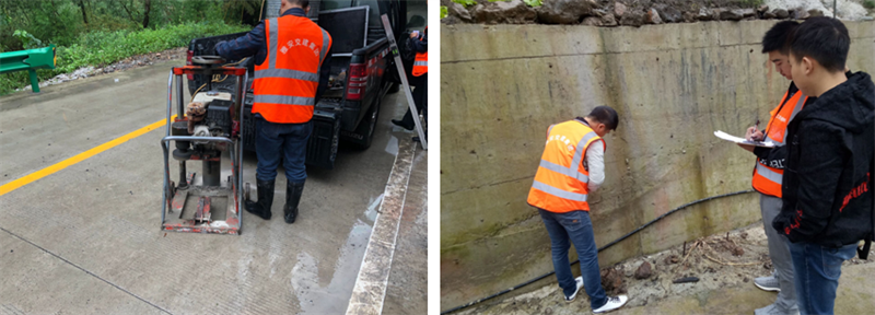 我公司于2018年11月16日召開檢測工作會,擬定驗收前檢測工作方案并對驗收工作進(jìn)行全面安排,并于2018年11月19日組織實施檢測。檢測小組按規(guī)定項目及抽檢頻率對該工程進(jìn)行了現(xiàn)場檢測。經(jīng)檢測,天全縣藏魚路(藏魚橋至魚泉鄉(xiāng))四級公路路面改造工程項目除外觀質(zhì)量缺陷外其余檢測指標(biāo)基本滿足《公路工程質(zhì)量檢驗評定標(biāo)準(zhǔn)》(JTG F80/1-2004)合格標(biāo)準(zhǔn)。
