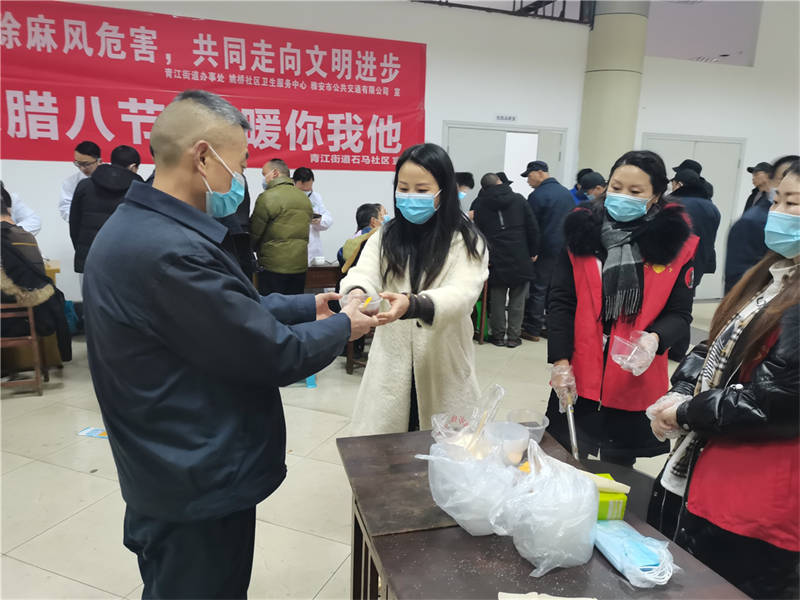 1月20日,農(nóng)歷臘月初八,雨城區(qū)青江街道石馬社區(qū)的工作人員為正在這里接受義診服務(wù)的公交車(chē)駕駛員送上熱氣騰騰的臘八粥。