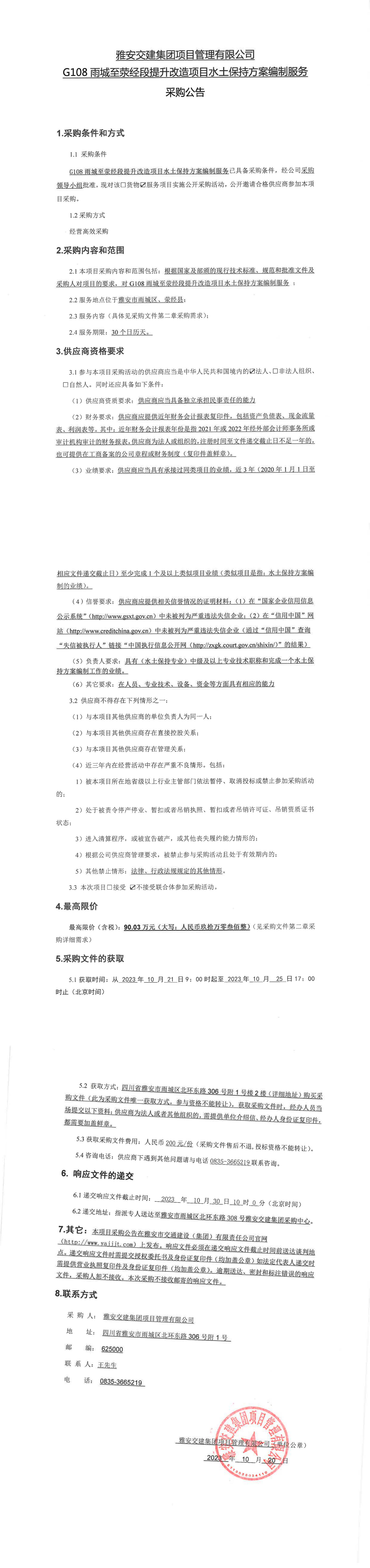 雅安交建集團(tuán)項目管理有限公司G108雨城至滎經(jīng)段提升改造項目水土保持方案編制服務(wù)采購公告