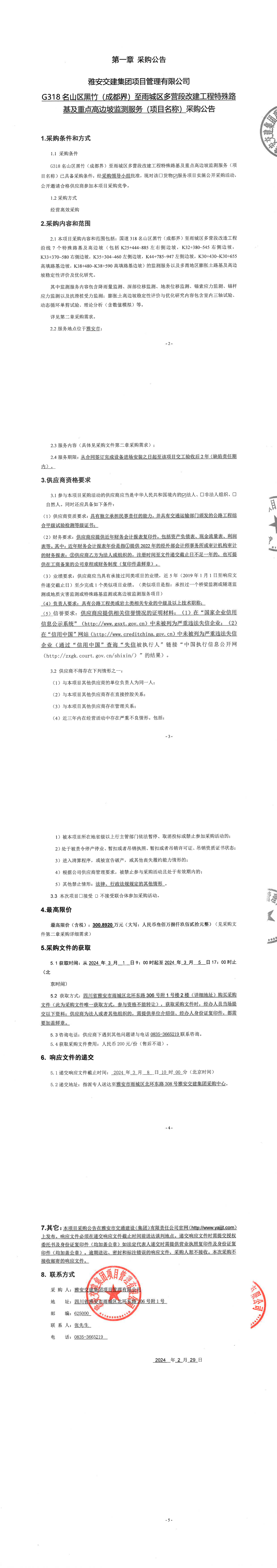 雅安交建集團(tuán)項目管理有限公司國道318名山區(qū)黑竹(成都界)至雨城區(qū)多營段改造工程的特殊及重點路基高邊坡監(jiān)測服務(wù)(項目名稱)采購公告
