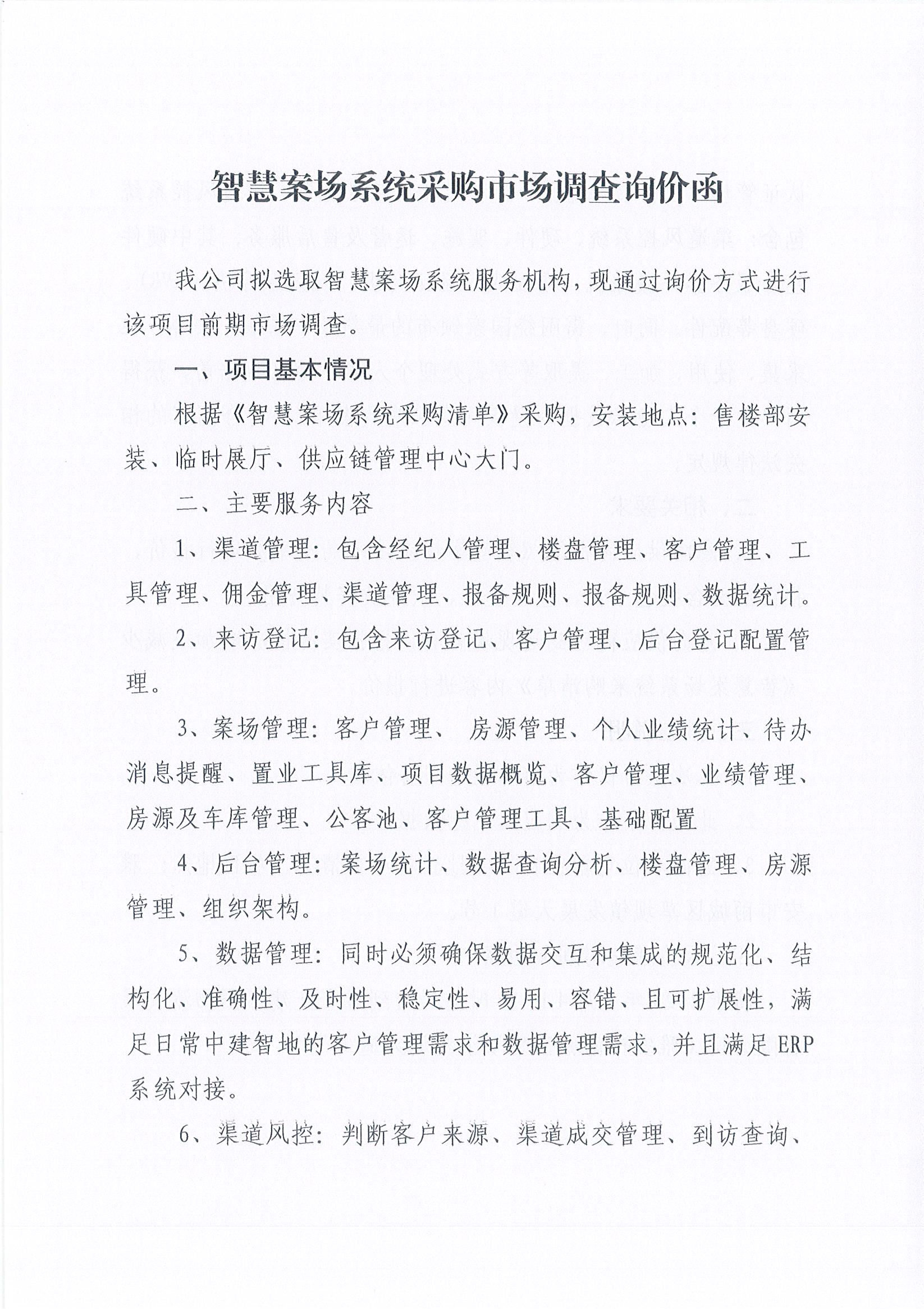 雅安交建集團(tuán)物流發(fā)展有限公司智慧案場(chǎng)系統(tǒng)采購(gòu)市場(chǎng)調(diào)查詢價(jià)函