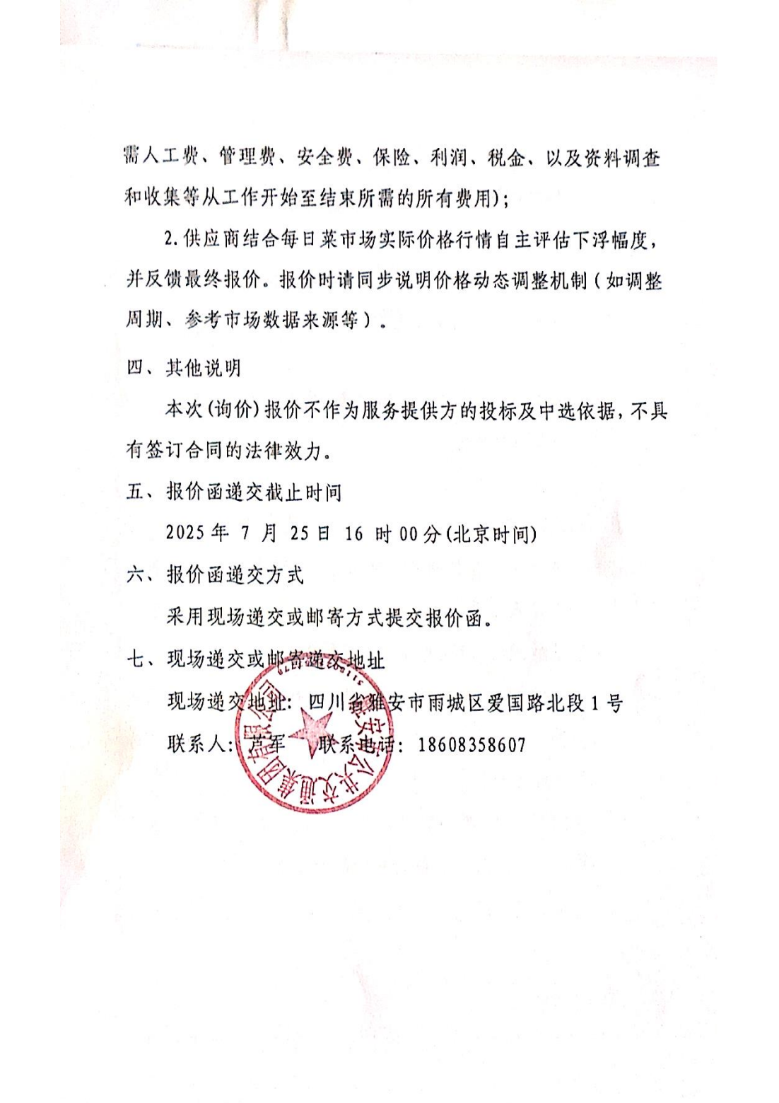 關(guān)于雅安市公共交通集團(tuán)有限公司食堂農(nóng)產(chǎn)品配送服務(wù)采購(gòu)限價(jià)的詢價(jià)函