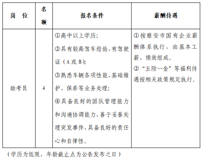 雅安交建集團(tuán)平順檢測有限公司主要經(jīng)營項(xiàng)目為機(jī)動車安全技術(shù)檢驗(yàn)、機(jī)動車駕駛員培訓(xùn)(科目二、三適應(yīng)性訓(xùn)練)、機(jī)動車環(huán)保定期檢驗(yàn)、汽車綜合性能檢測等相關(guān)業(yè)務(wù)。因業(yè)務(wù)發(fā)展需要面向社會招聘人員,特公告如下:
