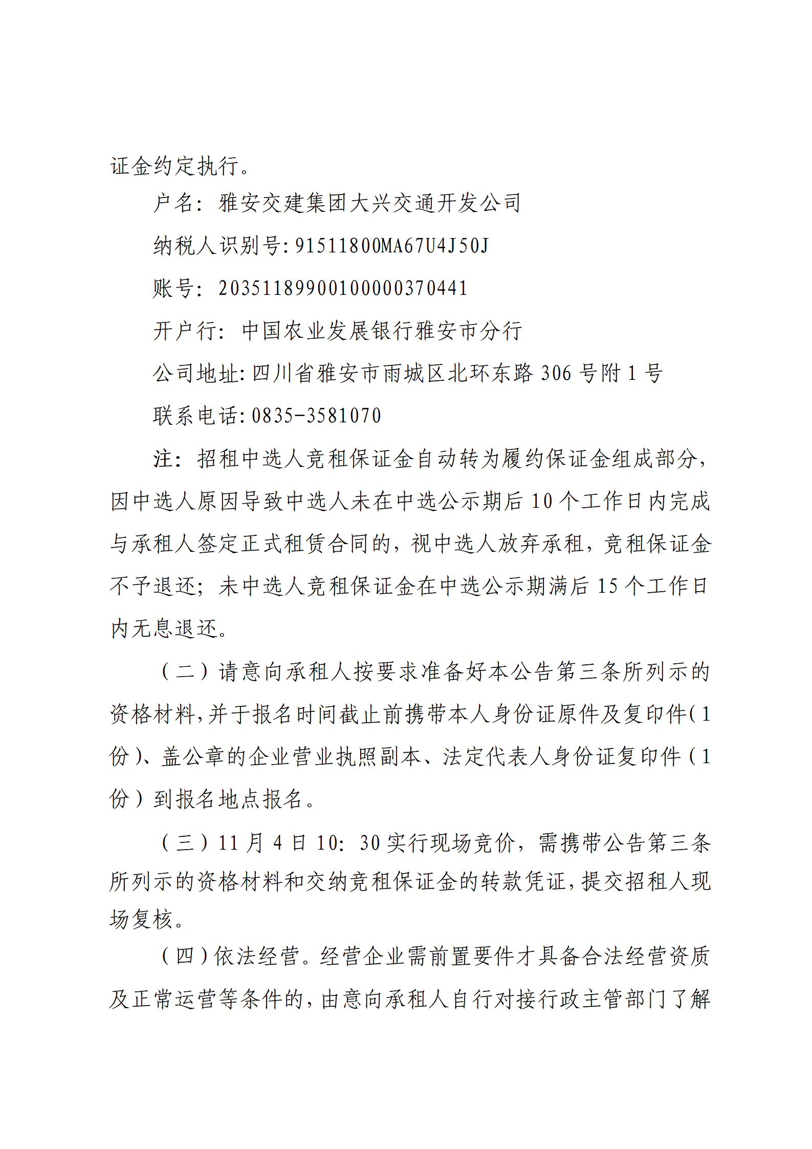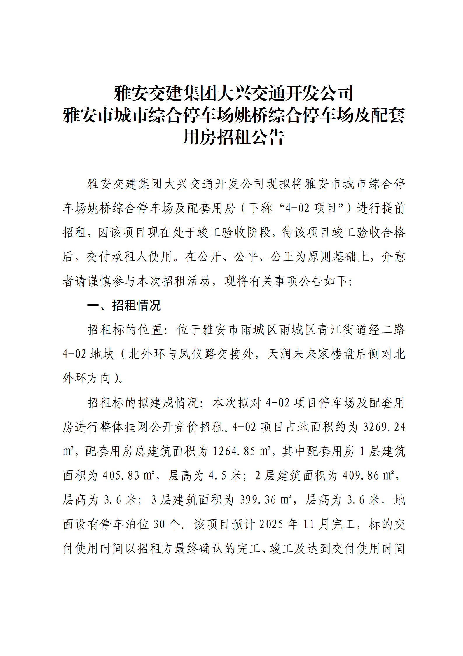 雅安交建集團(tuán)大興交通開發(fā)公司 雅安市城市綜合停車場姚橋綜合停車場及配套用房招租公告