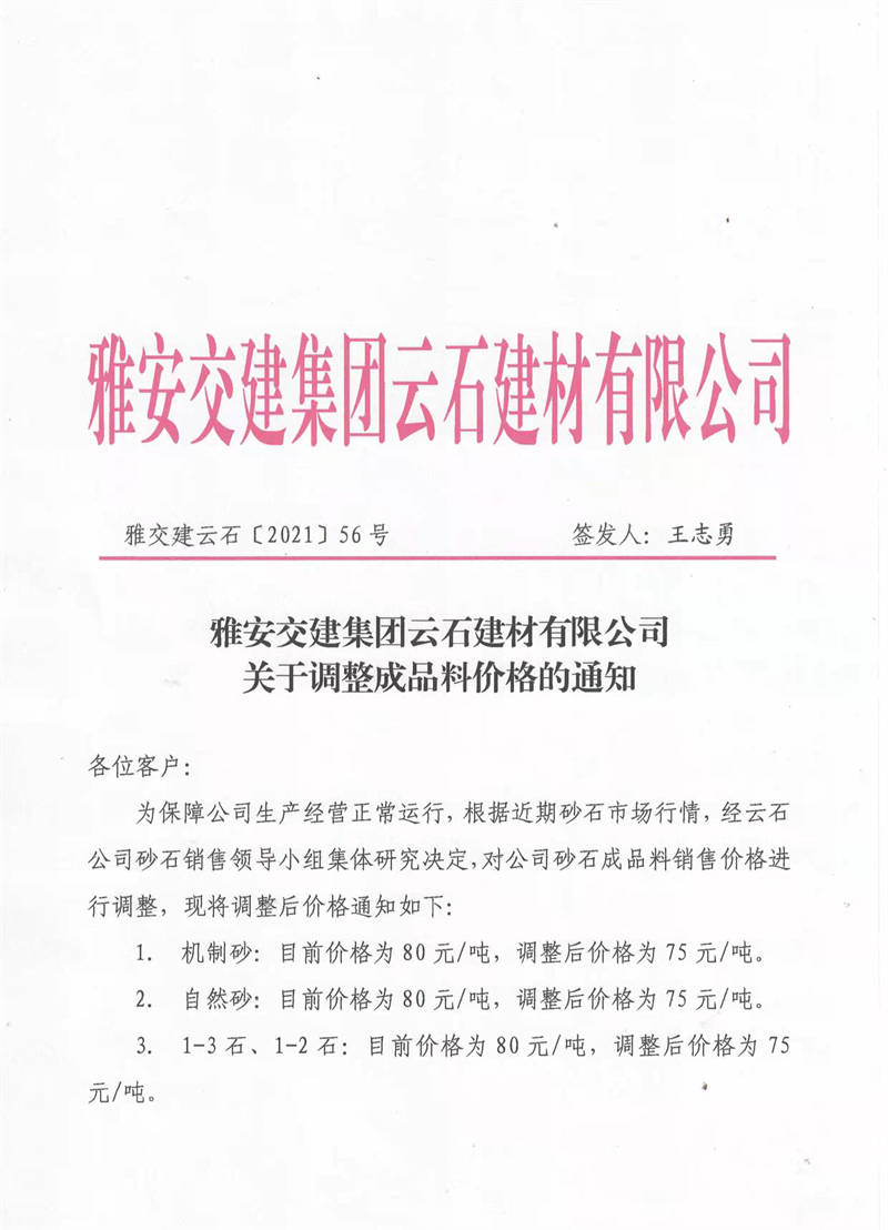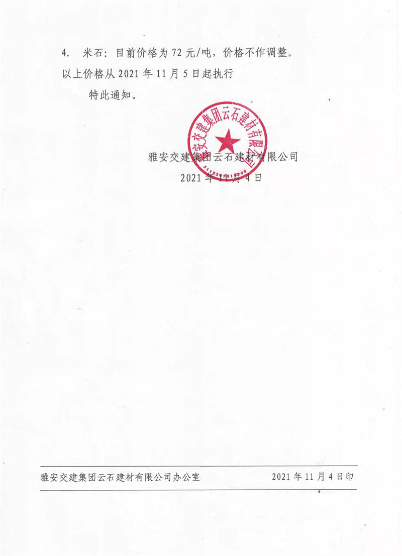 ÑŰ²½»½¨¼¯ˆFÔÆÊ¯¹«Ë¾êPÓÚÕ{(di¨¤o)Õû³ÉÆ·ÁÏäNÊÛƒr¸ñµÄ֪ͨ£¨2021.11.4£©