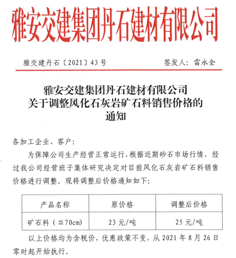 ÑŰ²½»½¨¼¯ˆFµ¤Ê¯¹«Ë¾êP(gu¨¡n)ÓÚÕ{(di¨¤o)ÕûïL»¯Ê¯»Ò?gu¨©)rµVʯÁÏäNÊÛƒr¸ñµÄ֪ͨ