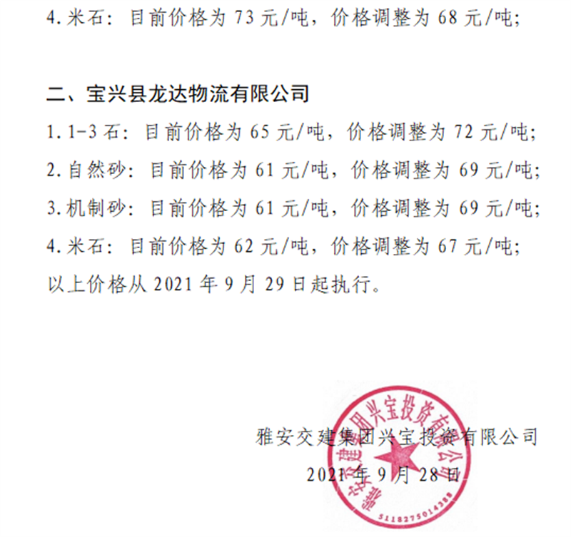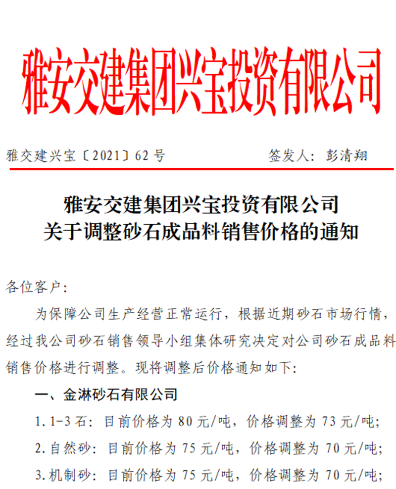 ÑŰ²½»½¨¼¯ˆFÅdŒš¹«Ë¾êP(gu¨¡n)ÓÚÕ{(di¨¤o)Õûɰʯ³ÉÆ·ÁÏäNÊÛƒr¸ñµÄ֪ͨ£¨2021.9.28£©