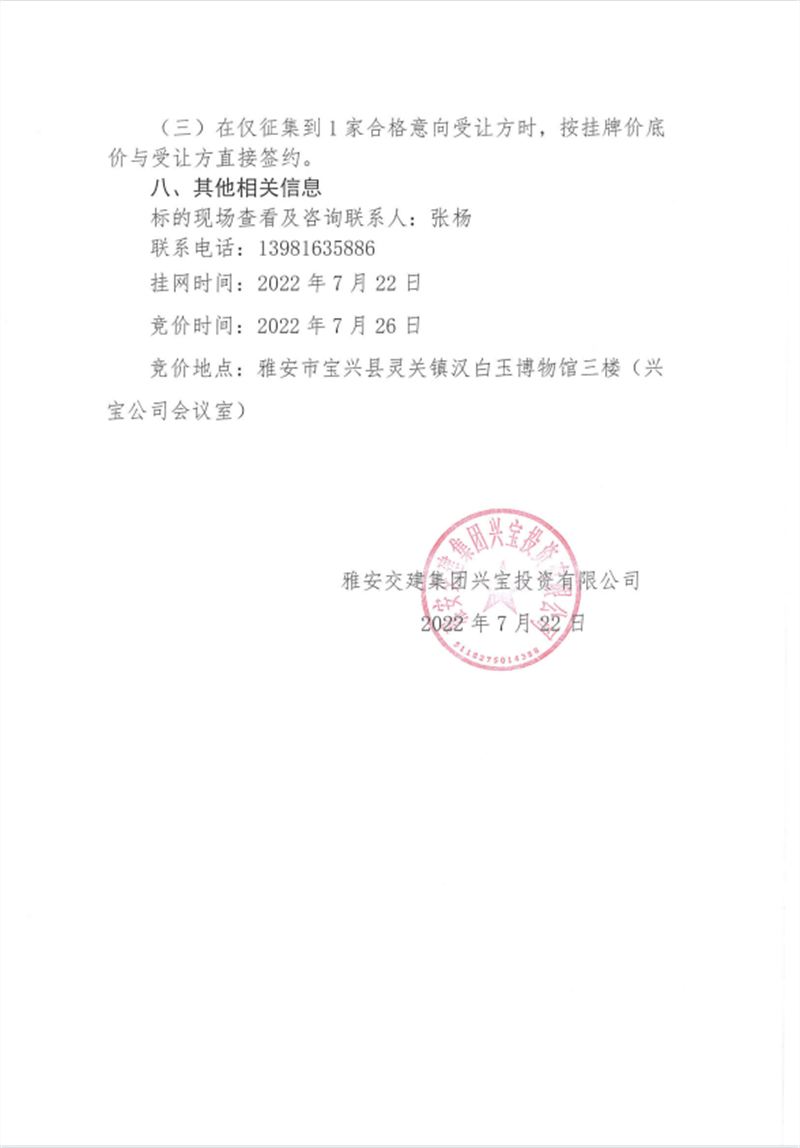 興寶公司寶興縣靈關(guān)鎮(zhèn)代碑寺土地整理項(xiàng)目10萬(wàn)噸可利用棄渣競(jìng)價(jià)銷售掛網(wǎng)公告掛網(wǎng)公告7.22(5萬(wàn)噸)