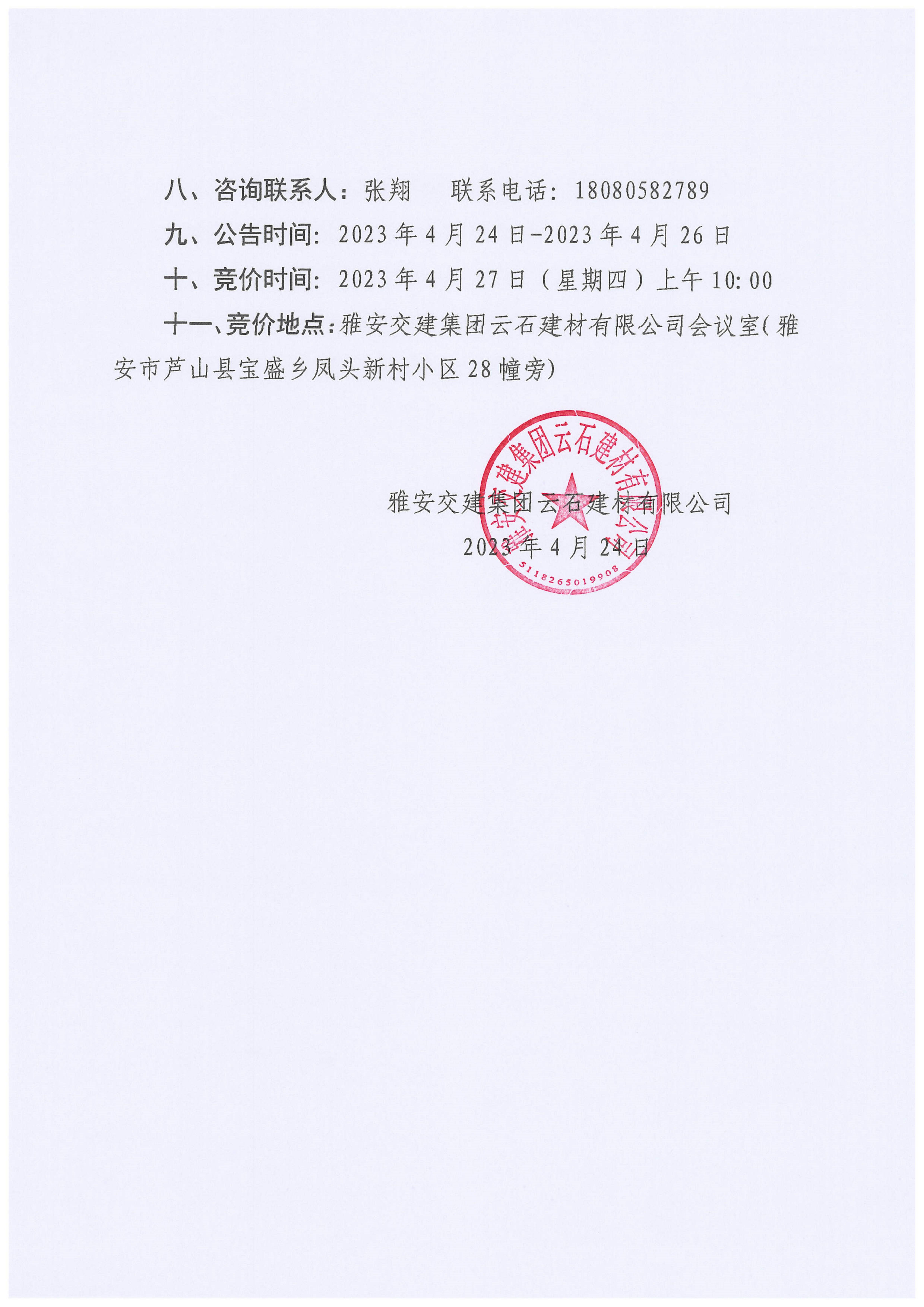 雅交建云石建材有限公司超規(guī)格石料競(jìng)價(jià)銷售公告(2023-4-24)